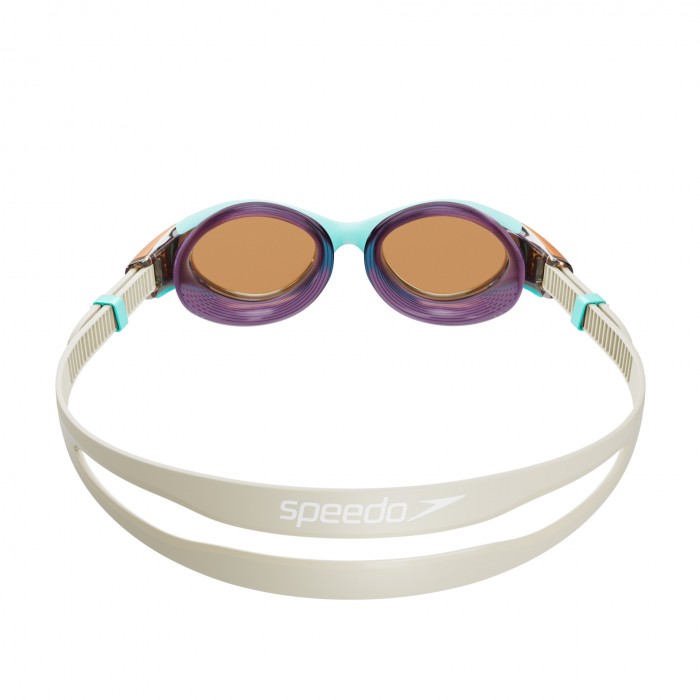 Our Biofuse goggle just got better Featuring our best-selling Speedo Biofusetechnology Our Biofuse 20 goggle takes comfort and fit to the next level with our patent-pending push-button mechanism and super-soft seals with a new groove design It?s everything you love about Biofuse - now even better Hydroscopic Lens shape for maximum foveal & peripheral vision with minimum head movement Hydrodynamic nose bridges with vertical locking system for speed comfort & durability (SML) IQfit 3D goggle seal for a leak-free secure fit and reduced marks around the eyes |